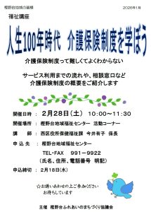 2月28日(土)福祉講座 ”人生100年時代 介護保険制度を学ぼう”